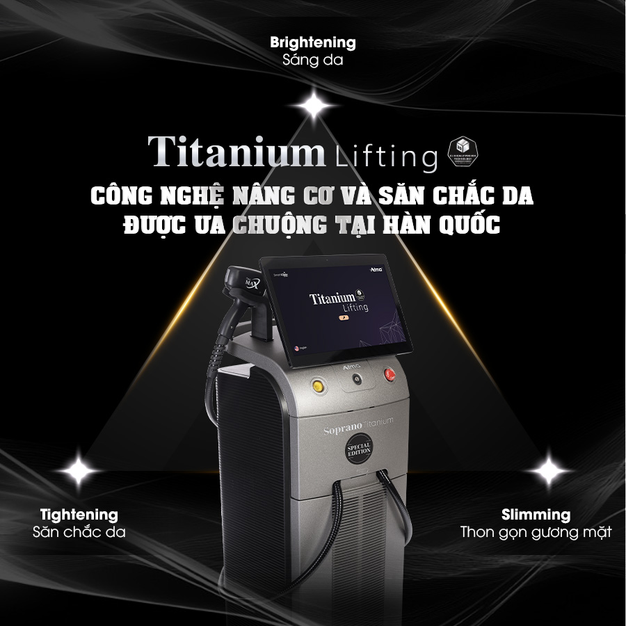 xem thêmTitanium Lifting là công nghệ nâng cơ, săn chắc và trẻ hóa da không xâm lấn của Alma, ứng dụng ba bước sóng laser phát đồng thời (755nm – 810nm – 1064nm) kết hợp công nghệ SHR™ và hệ thống làm mát ICE Plus™. Công nghệ này cho phép tác động đa tầng, hỗ trợ nâng cơ, cải thiện độ đàn hồi và làm sáng da tức thì, đồng thời mang lại trải nghiệm điều trị êm ái và thoải mái.