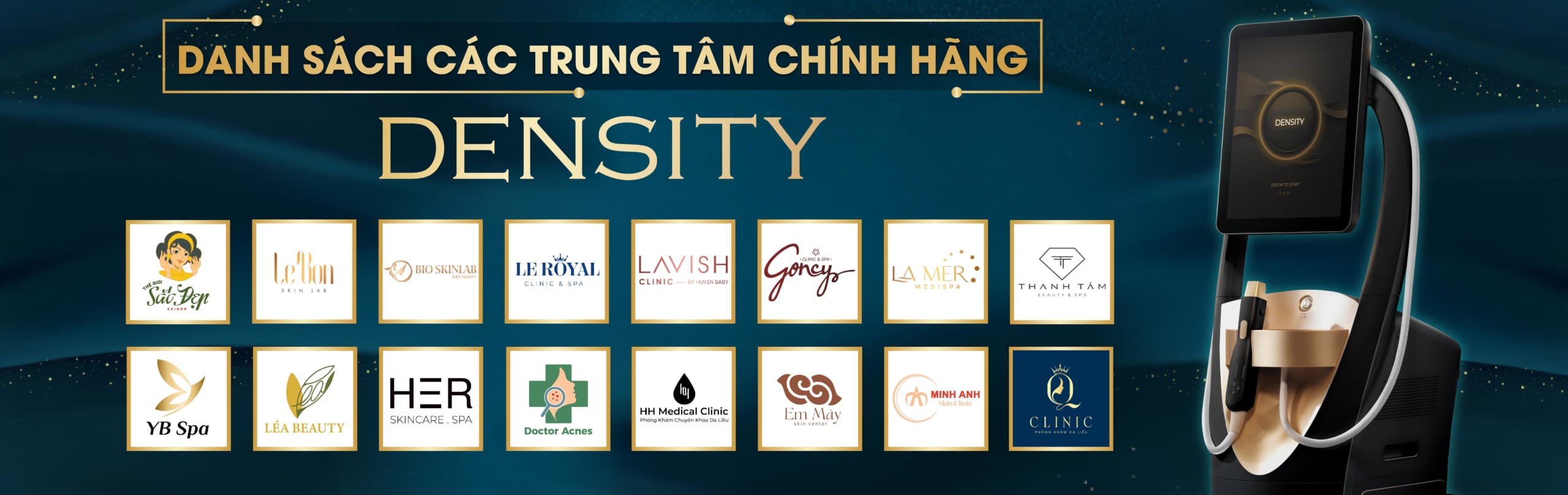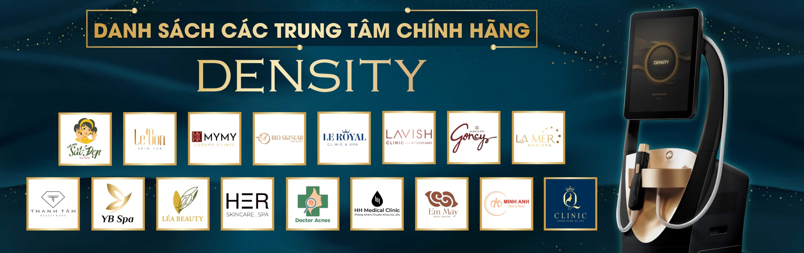 Density là thiết bị sử dụng sóng tần số vô tuyến mới nhất, được FDA Hoa Kỳ chứng nhận an toàn và hiệu quả. Density là thiết bị duy nhất sở hữu công nghệ ALPHA được bảo hộ bản quyền trên toàn thế giới. Với kỹ thuật phát liên lục RF đơn cực và RF lưỡng cực trong cùng 1 xung duy nhất giúp mang lại kết quả ngay lập tức sau điều trị, làm săn chắc và trẻ hóa da vùng mặt, mắt và cơ thể – điều mà các công nghệ RF đơn cực thế hệ trước chưa làm được